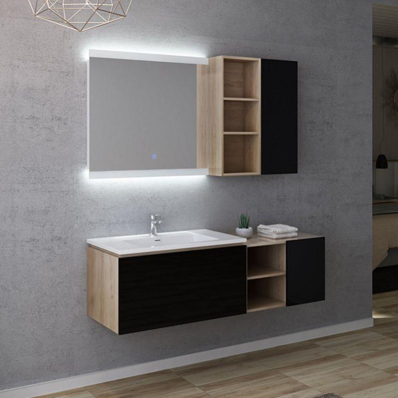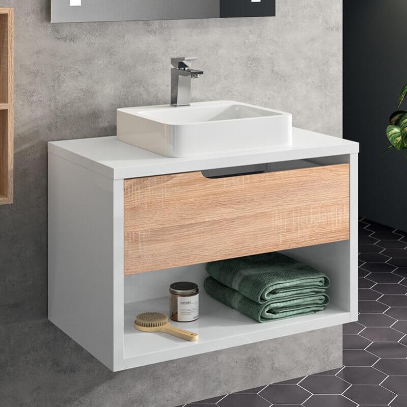 meuble sous vasque a suspendre 80 cm chene clair et laque 1 tiroir 1 niche beop leroy merlin