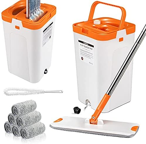 mastertop seau essoreur et balai microfibre set balai magique a plat rotatif et seau avec systeme nettoyage vadrouille pour nettoyage du sol et seau de lavage avec 6 serpillieres amazon fr epicerie