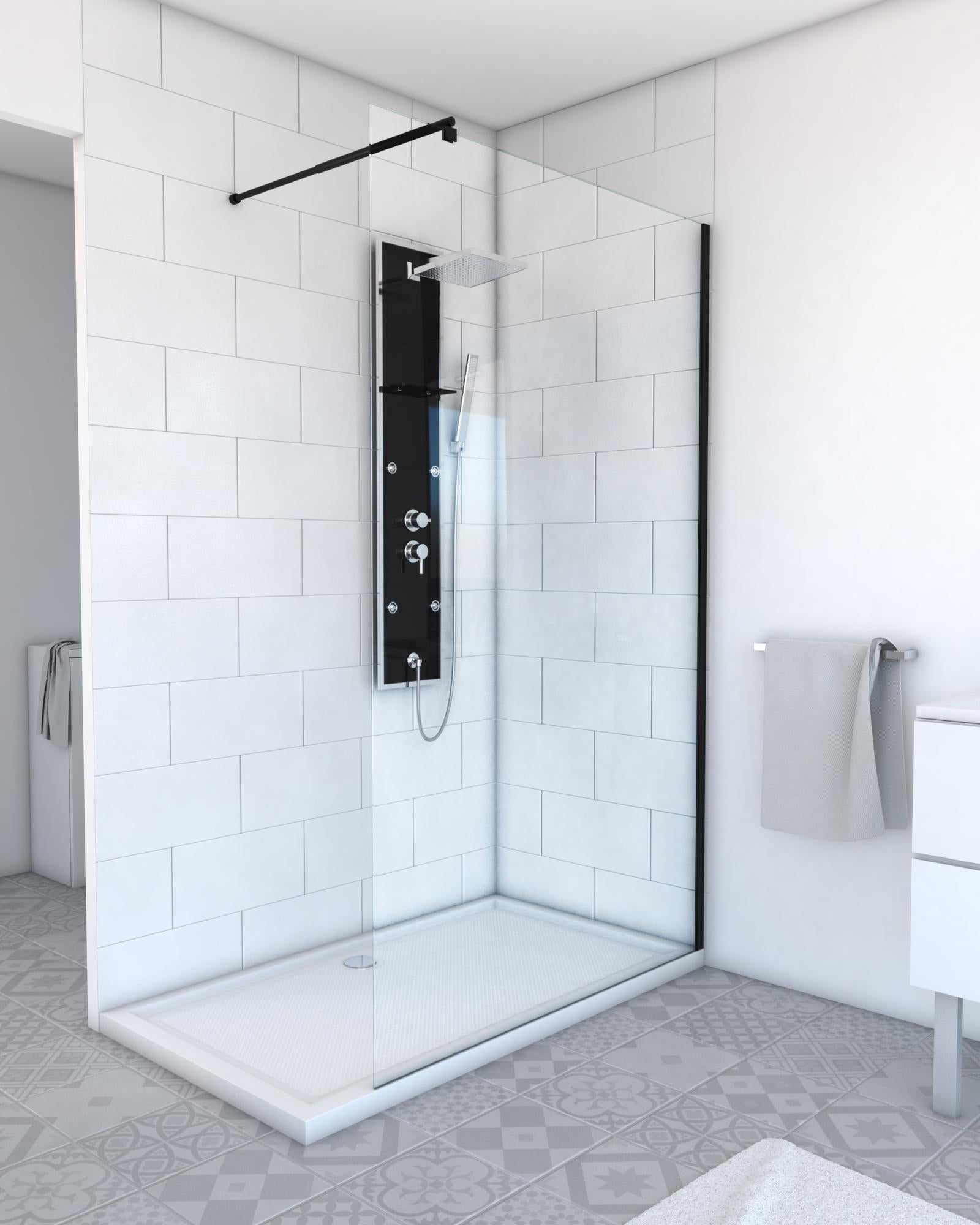 paroi de douche a l italienne transparent 80x200cm verre transparent 8mm profile noir mat paroi de douche paroi de douche italienne douche italienne