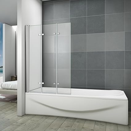 pare baignoire 130x140cm en verre anticalcaire paroi de douche 3 volets pivotant a 180 amazon fr bricolage