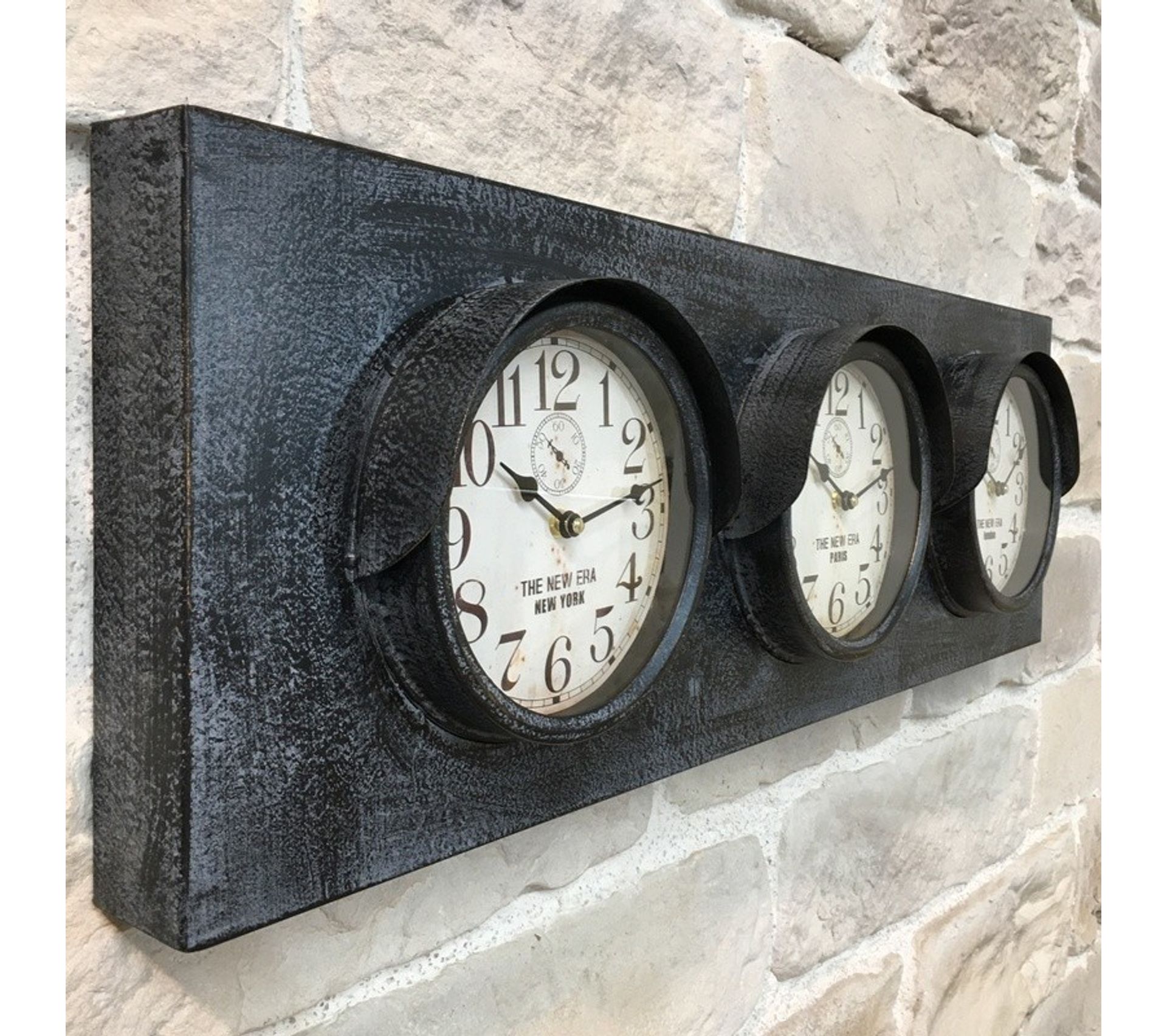 horloge longue horloge 3 cadrans multiple horloge fuseau horaire 90 50 cm x 30 cm horloge pendule but