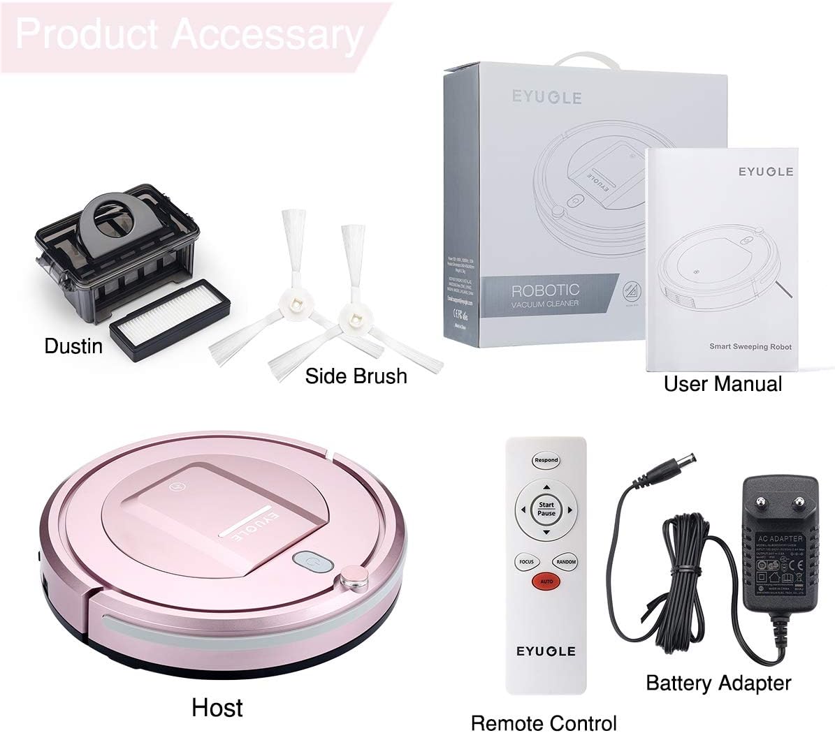 eyugle aspirateur robot kk290a machine nettoyage automatique avec telecommande 500pa 3 modes de nettoyage capteur intelligent anticollision antichute filtre hepa pour les poils danimaux tapis sol dur aspirateurs cuisine maison thac or th
