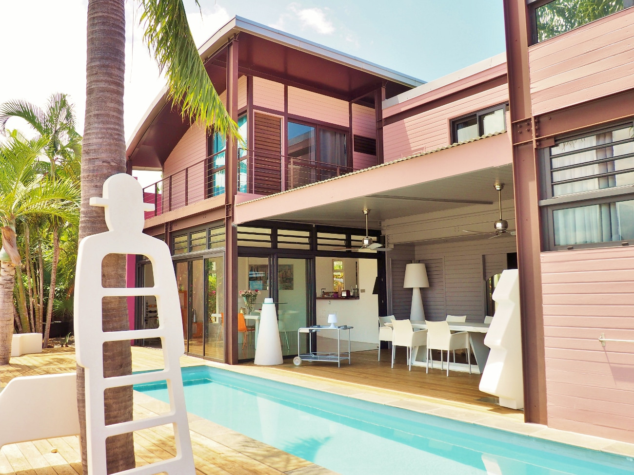 ponton bois piscine beige escalier cailloux blancs cordage corde chanvre piscine bois piscine bois enterree terrasse bois piscine