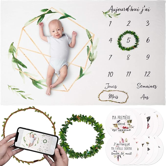 couverture etape bebe mensuelle avec 12 cartes premiere fois en francais croissance en photo de 0 a 12 ans sur tapis avec jalon par jour mois semaine annee cadeau original de naissance amazon fr bebes puericulture
