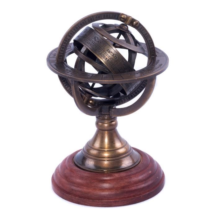 sphere armillaire laiton et bois astrologie steampunk globe cdiscount maison