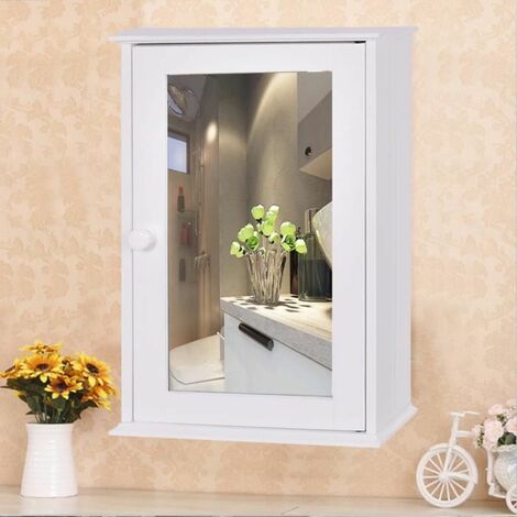 costway armoire murale salle de bain placard de rangement toilettes avec miroir meuble de rangement avec