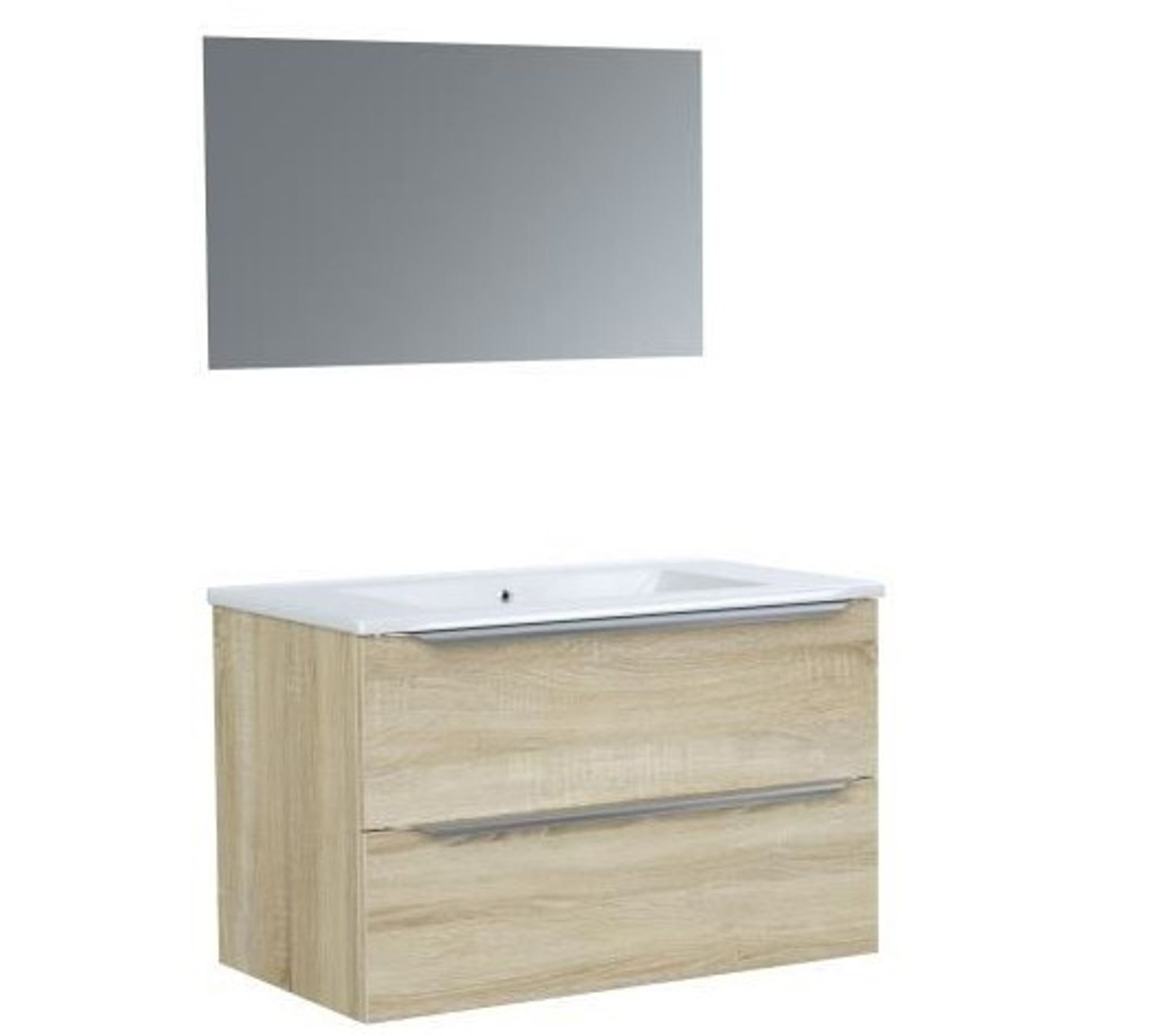 meuble de salle de bain sur le sol 80 cm chene avec 3 tiroirs et miroir