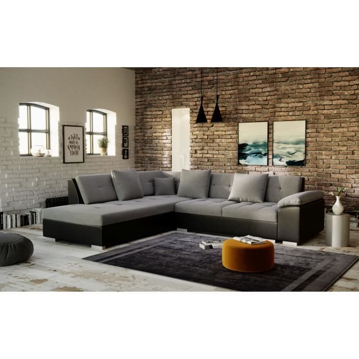 portos canape d angle angle gauche gris noir cdiscount maison