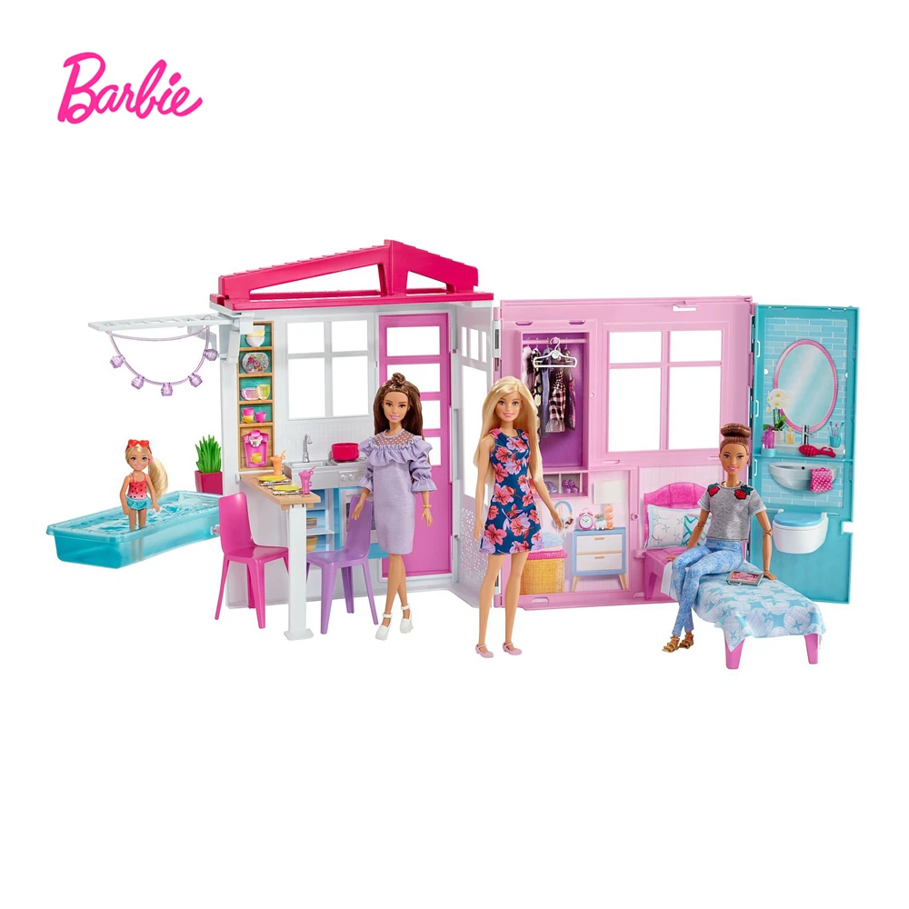 maison de barbie ensemble de jeu portable 1 etage maison de poupee avec piscine et accessoires jouet interactif cadeau de vacances fxg55 aliexpress