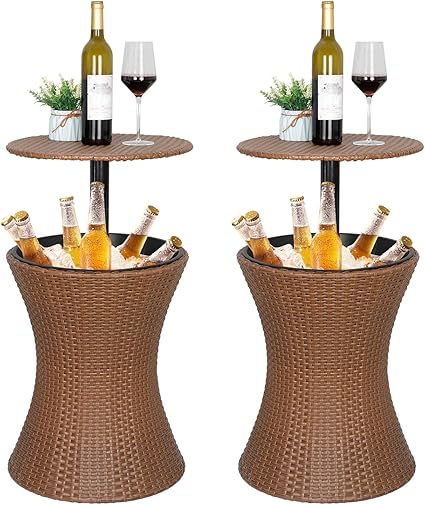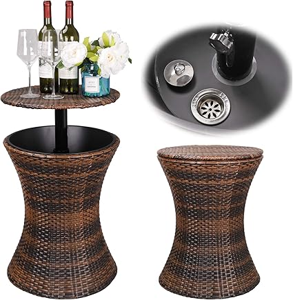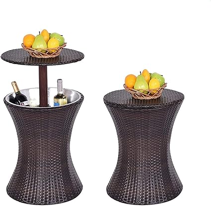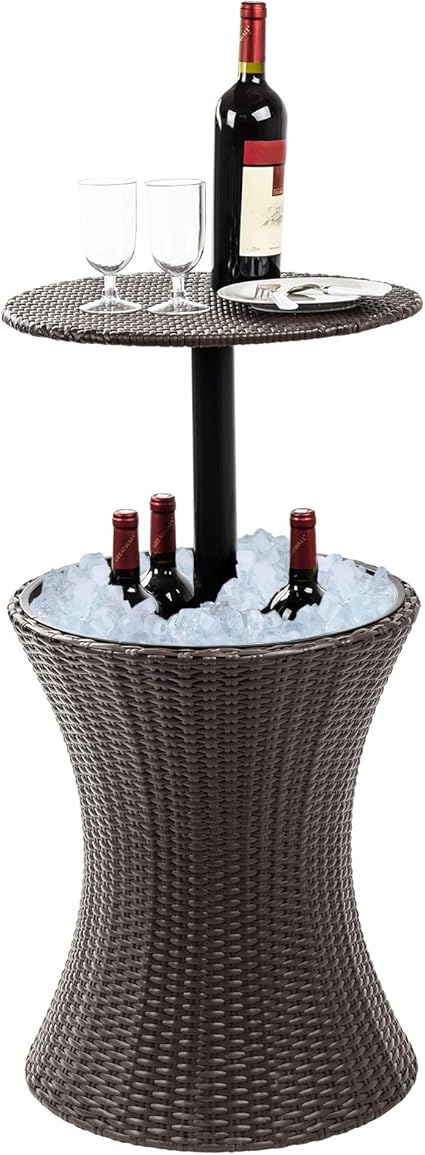 dawoo 5 gallons cool bar style rotin style patio exterieur piscine refroidisseur table avec hauteur reglable en plein air en osier seau a glace cocktail table basse pour la fete brun amazon fr cuisine