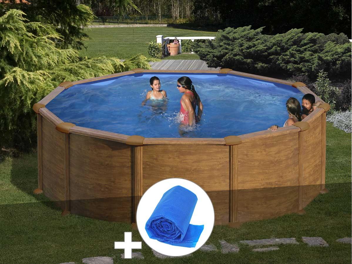 kit piscine acier aspect bois gre mauritius ronde 3 70 x 1 32 m bache a bulles leroy merlin