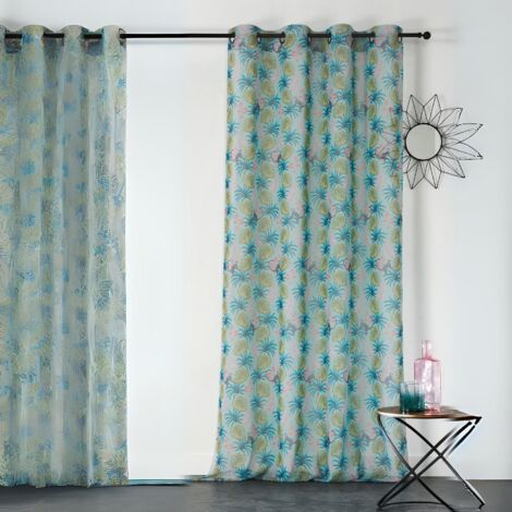 voilage noel grande largeur a oeillets 300x240cm en lin turquoise topfinel cdiscount maison