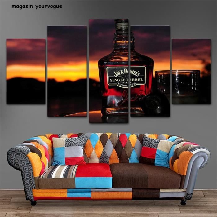toile imprimee en hd 5 pieces murales jack daniels whisky home decor poster cadre non inclus seulement toile cdiscount maison