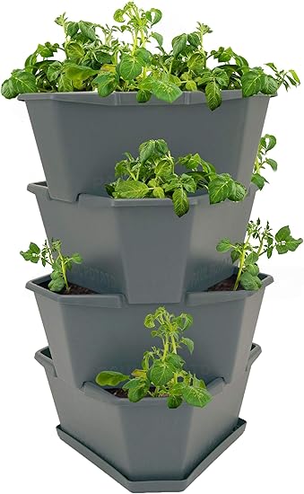 gusta garden paul potato starter tour de pommes de terre empilable plate forme surelevee planteuse pots de fleurs pour le balcon le jardin et la terrasse 4 etages anthracite gris amazon fr jardin