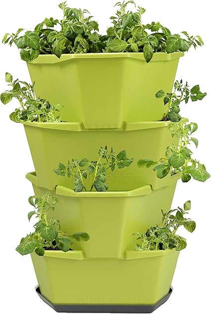 gusta garden paul potato starter tour de pommes de terre empilable plate forme surelevee planteuse pots de fleurs pour le balcon le jardin et la terrasse 4 etages vert amazon fr jardin