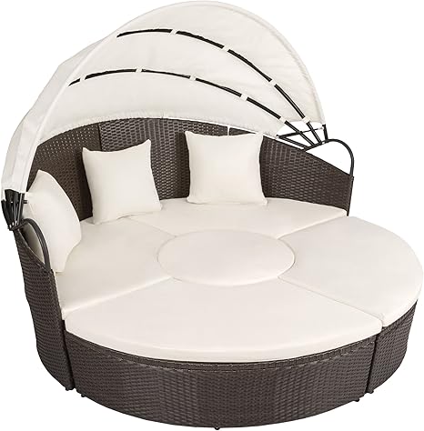 tectake canape de jardin chaise longue bain de soleil en aluminium et resine tressee avec toit depliable largeur env 178cm diverses couleurs au choix marron antique no 402127 amazon fr jardin