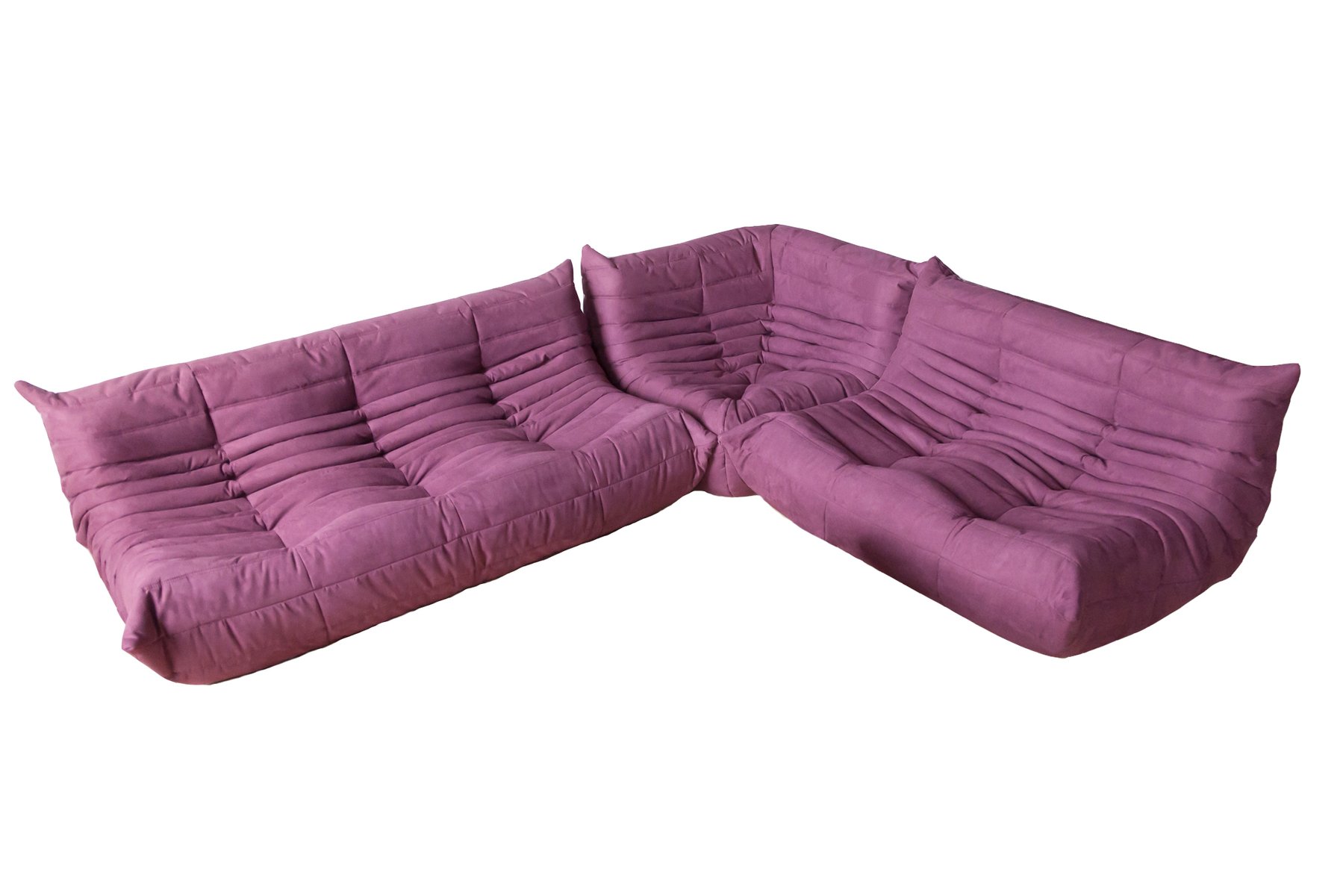 ensemble de salon vintage microfibre aubergine togo par michel ducaroy pour ligne roset annees 1970 design market