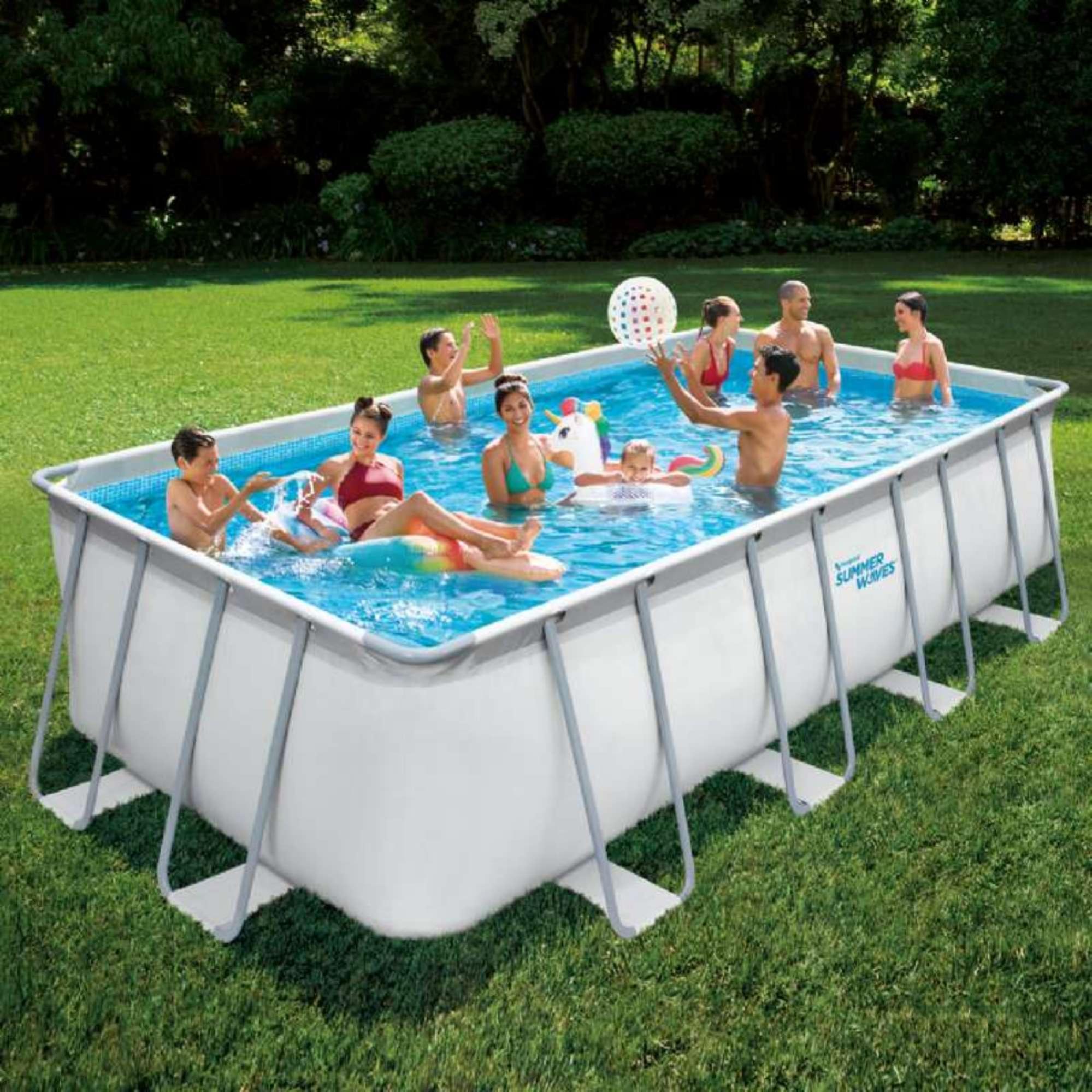 kit complet avec piscine tubulaire hors sol rectangulaire 7 32x3 66x1 32m summer waves leroy merlin