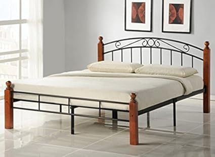 pegane lit design en metal pieds de lit en bois malaisiens marron dim 160 x 200 cm amazon fr cuisine maison