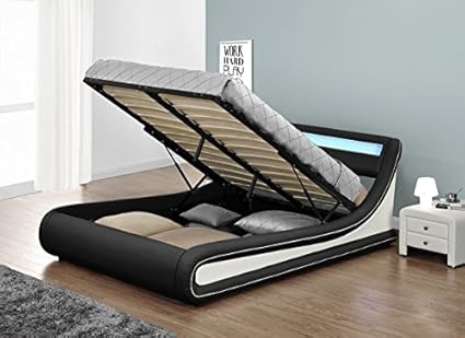 lumina lit coffre adulte a led simili noir sommier inclus 160x200 cm lit but