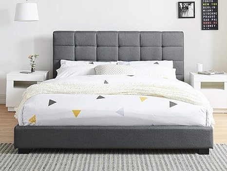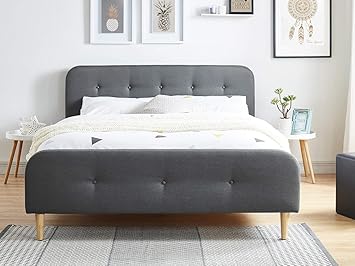 generique lit adulte scandinave en tissu gris fonce capitonne sommier a latte 140x190 collection mark amazon fr cuisine maison