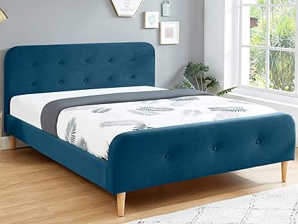 homifab lit adulte scandinave 160x200 en velours bleu paon avec tete de lit capitonnee et sommier a lattes inclus collection mark amazon fr cuisine maison
