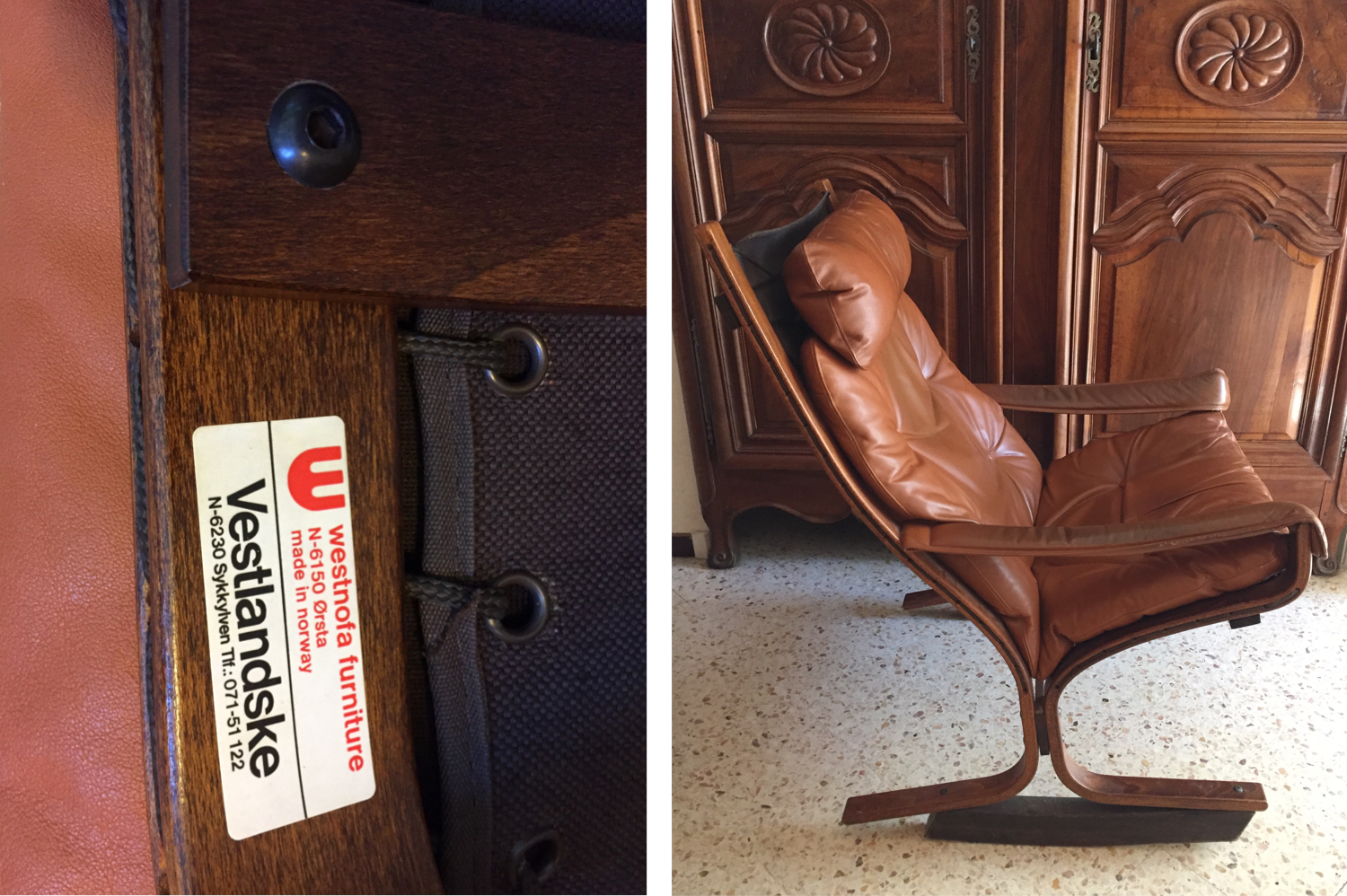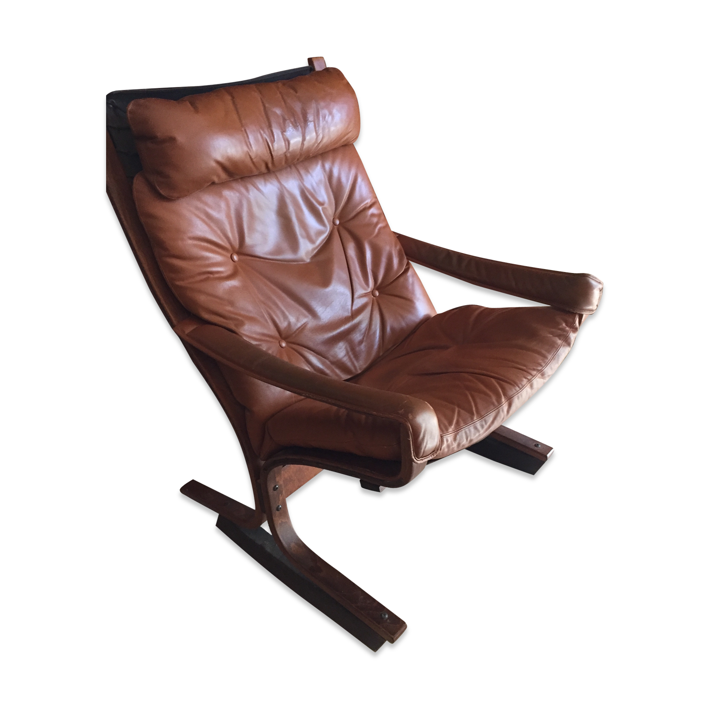 fauteuil cuir vintage westnofa siesta par ingmar relling modele rocking chair avec repose pied selency