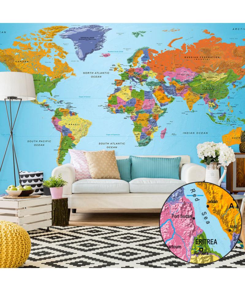 papier peint adhesif world map colourful geography ii leroy merlin