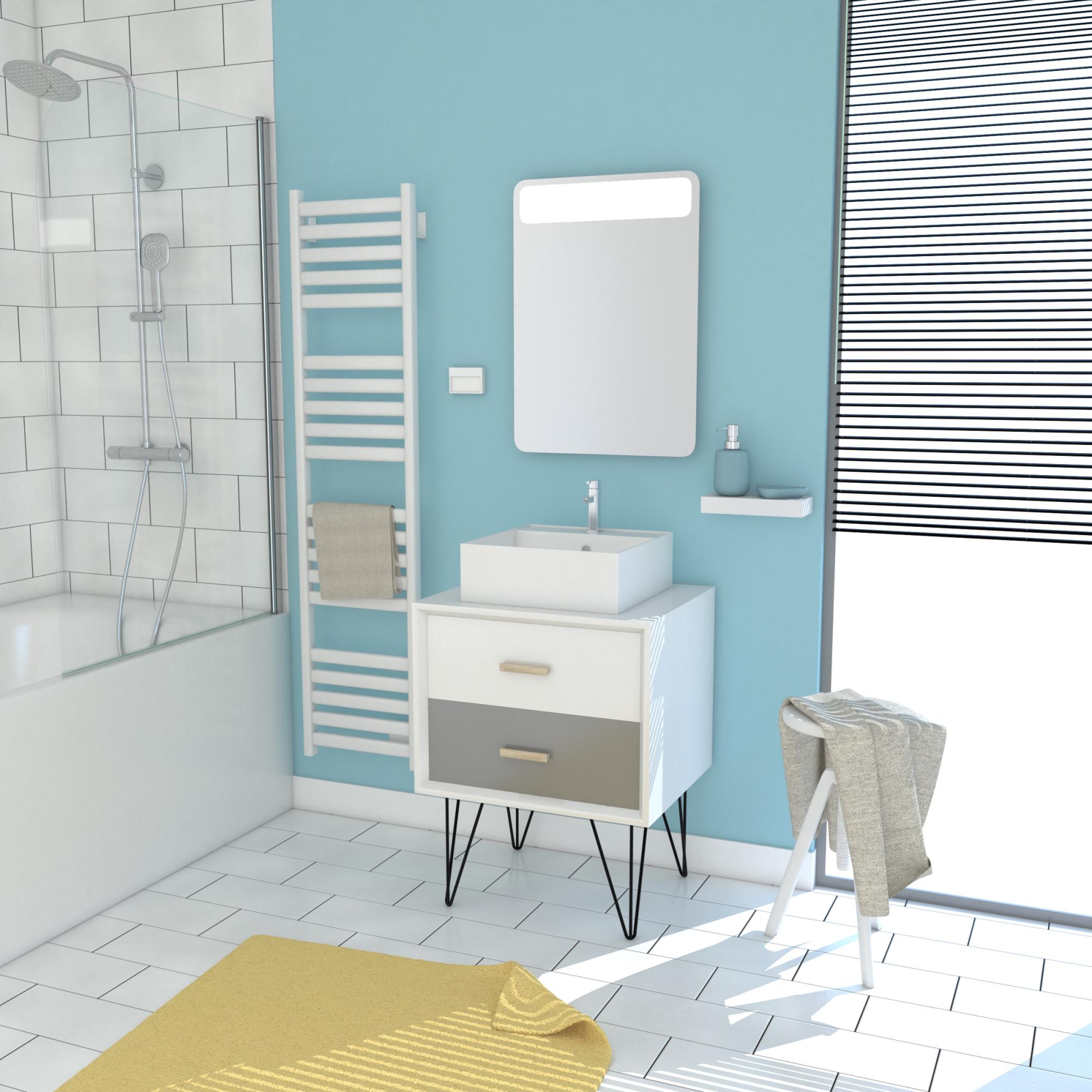 meuble salle de bain scandinave blanc et gris 60 cm sur pieds avec tiroirs vasque a poser et miroir leroy merlin