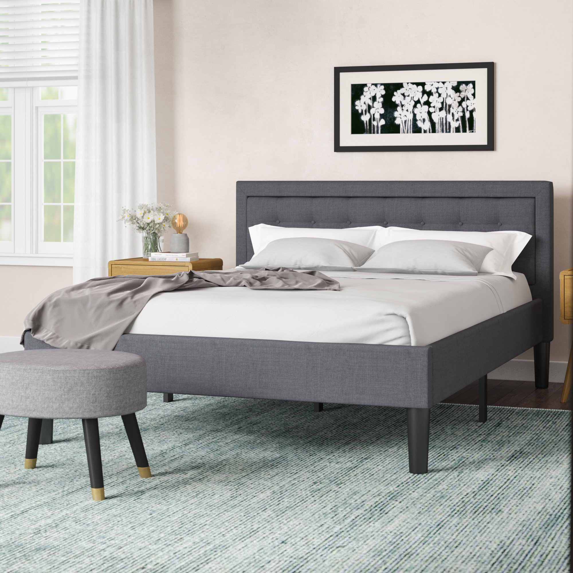 wrought studio lit plateforme tapissier capitonne a profil bas pinheiro et commentaires wayfair ca
