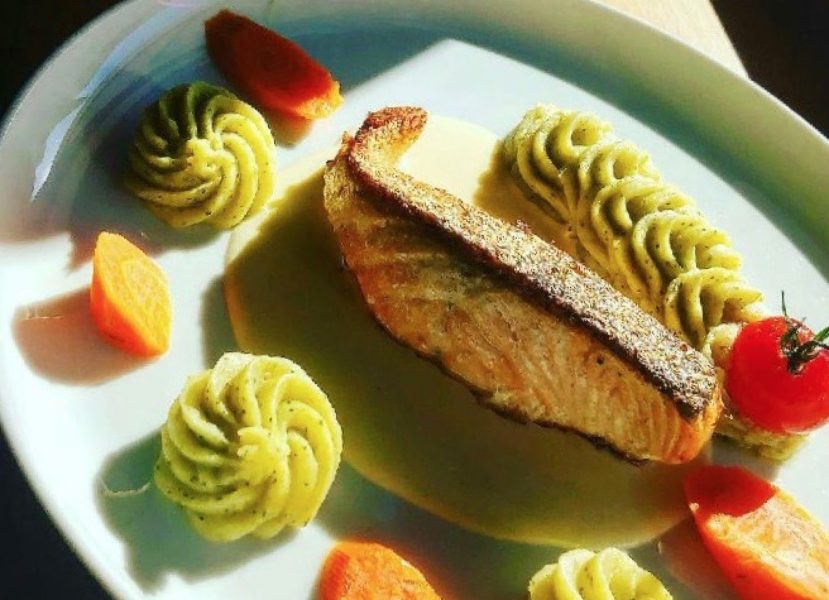 paves de saumon puree au brocoli et sauce au vin blanc de jean luc timmel