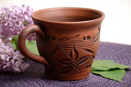tasse a the en terre cuite marron ornementee avec anse faite main 40 cl amazon fr cuisine maison