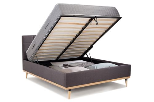 308 25 sur moka lit coffre 140 x 190 en tissu gris anthracite avec tete de lit capitonnee et pieds scandinaves achat prix fnac