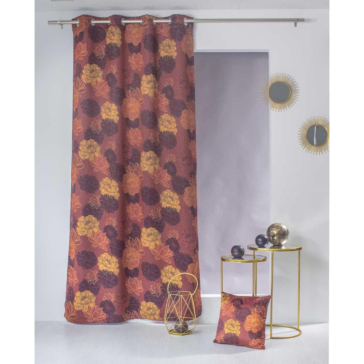 rideau occultant imprime lotus terre cuite 140 x 240 cm polyester leroy merlin