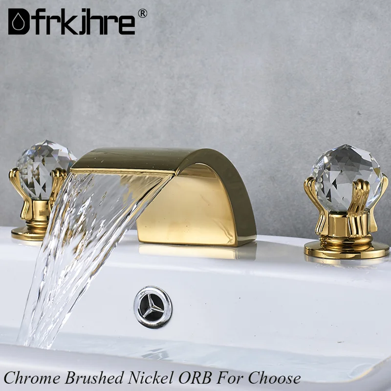 robinet de lavabo cascade poignee en cristal salle de bains cascade doree robinet de pont robinet de baignoire largement repandu lavabo chrome melangeur chaud et froid aliexpress