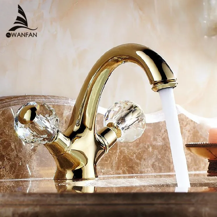robinet de lavabo en laiton or robinet de salle de bains en boule de cristal a double poignee lavabo de toilette melangeur d eau froide et chaude robinet d eau aliexpress