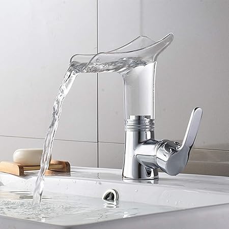 de la tasse de cristal transparent colore robinet de lavabo mitigeur a eau chaude et froide robinet lavabo cascade en laiton de finition chromee whitefaucet amazon fr cuisine maison