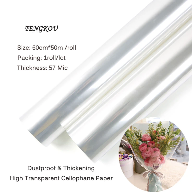 rouleau d emballage en cellophane 60cm x 50m papier d emballage pour fleurs film plastique transparent opp anti poussiere materiaux d emballage pour cadeaux aliexpress