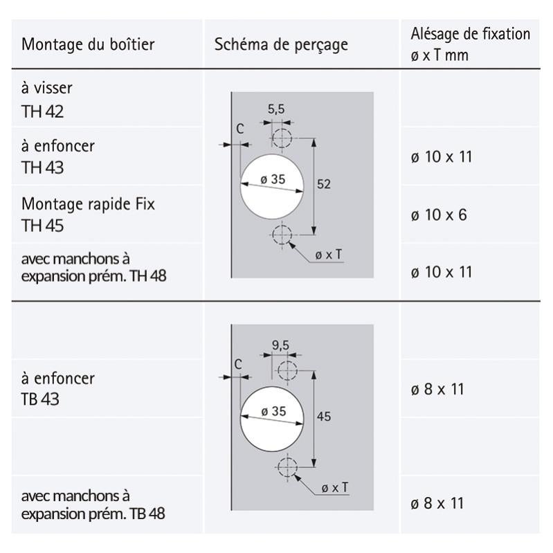 charniere intermat 9936 coudure 0 mm entraxe 45 mm epaisseur porte mini 14 mm fixation a tourillons montage en applique profondeur boitier 11 1 mm version tb43 hettich leroy merlin