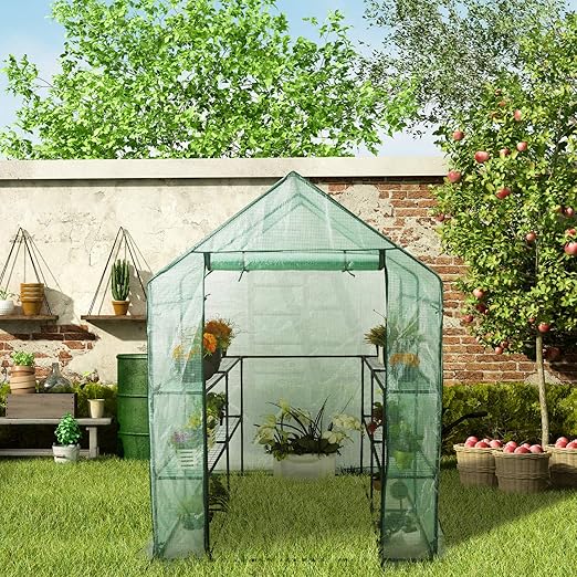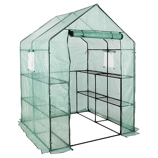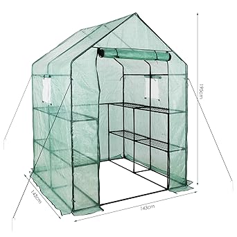 fixkit serre de jardin film plastique avec etagere fenetre ancre ideale pour faire pousser et proteger vos plantes en toutes saisonsprotege les plantes fleurs ou legumes 195 x 143 x 143 cm amazon fr commerce industrie science