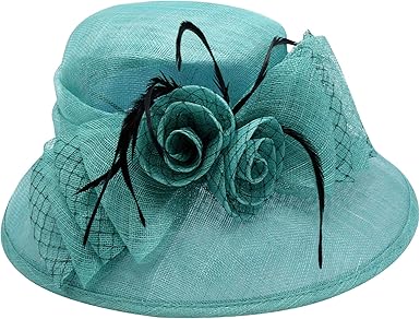 chapeau mariage sisal double noeud fleur plume bleu turquoise amazon fr vetements et accessoires
