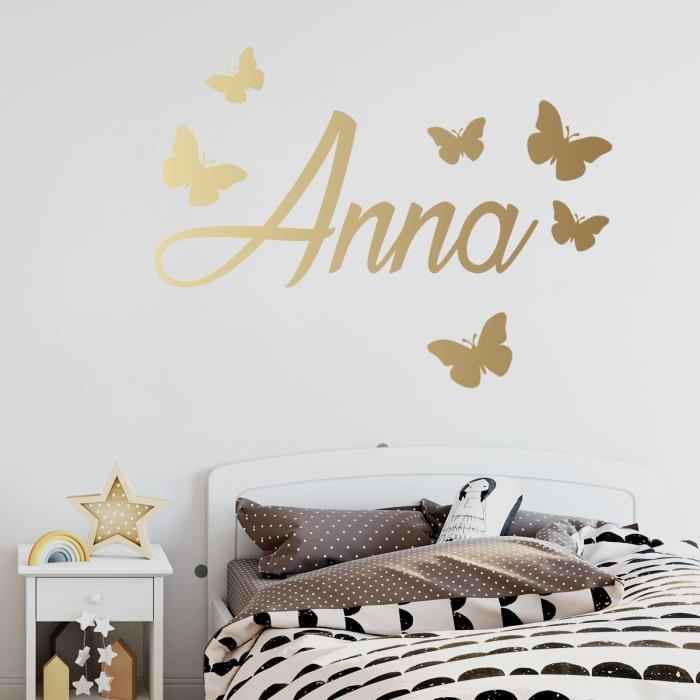 stickers muraux deco chambre enfant stickers papillons avec prenom au choix or 600x380 mm cdiscount maison