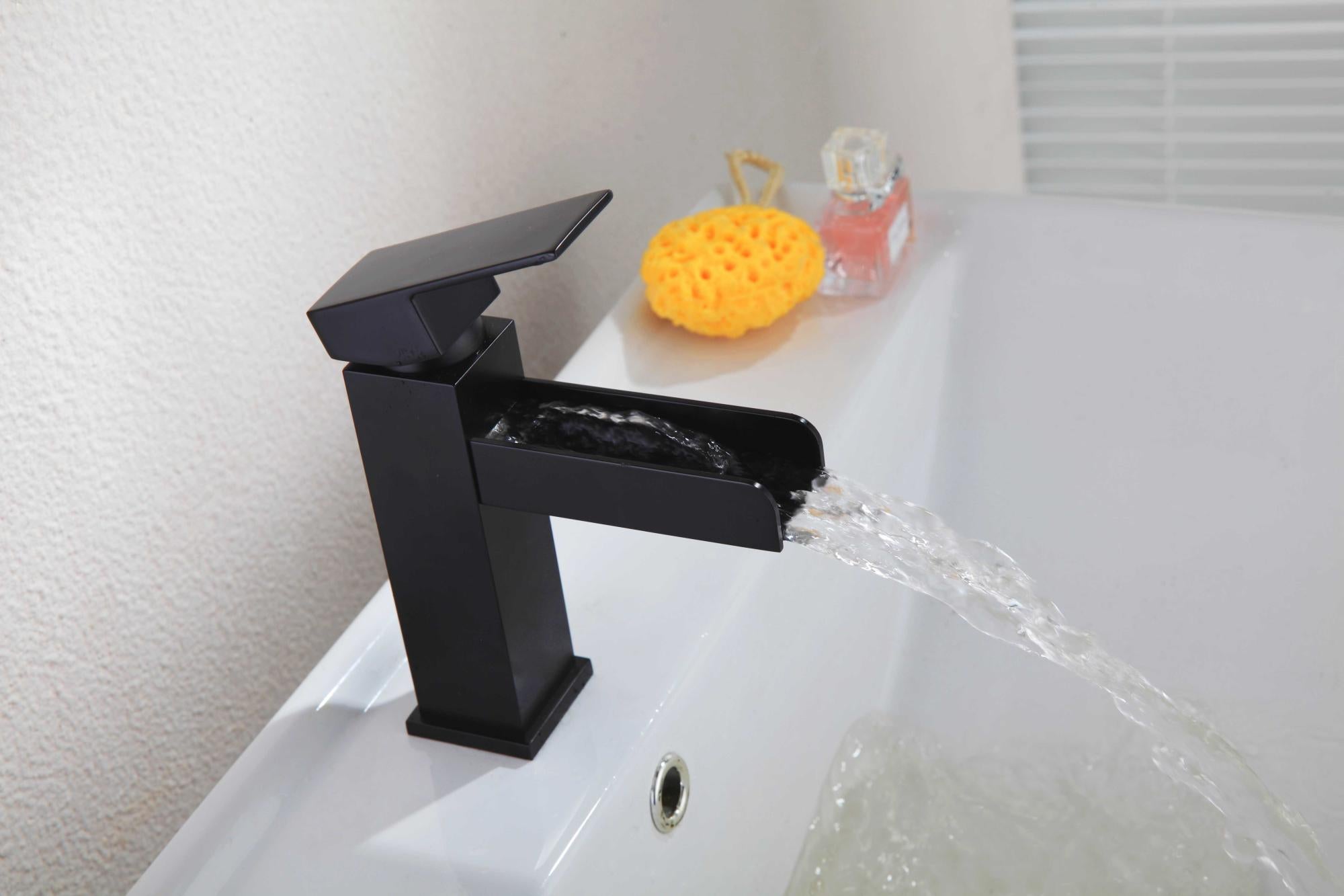 robinet lavabo mitigeur moderne avec bec en cascade en noir solide leroy merlin