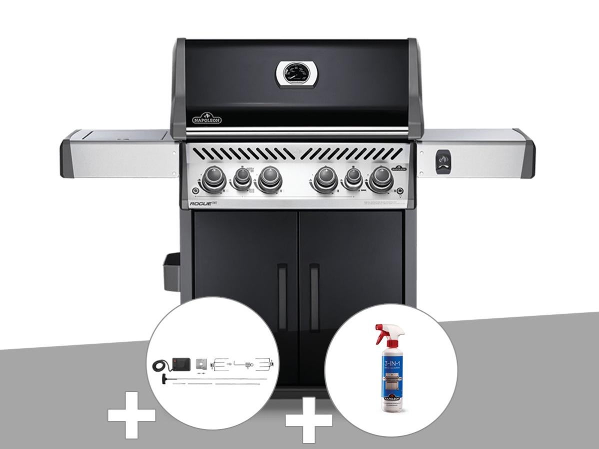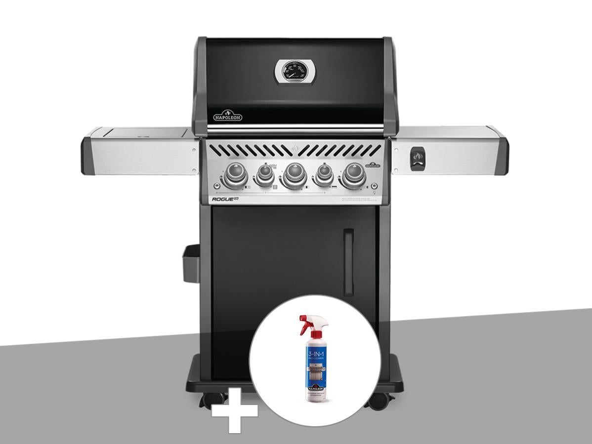 barbecue a gaz napoleon rogue se 525 noir 4 bruleurs rotissoire nettoyant grill 3 en 1 leroy merlin