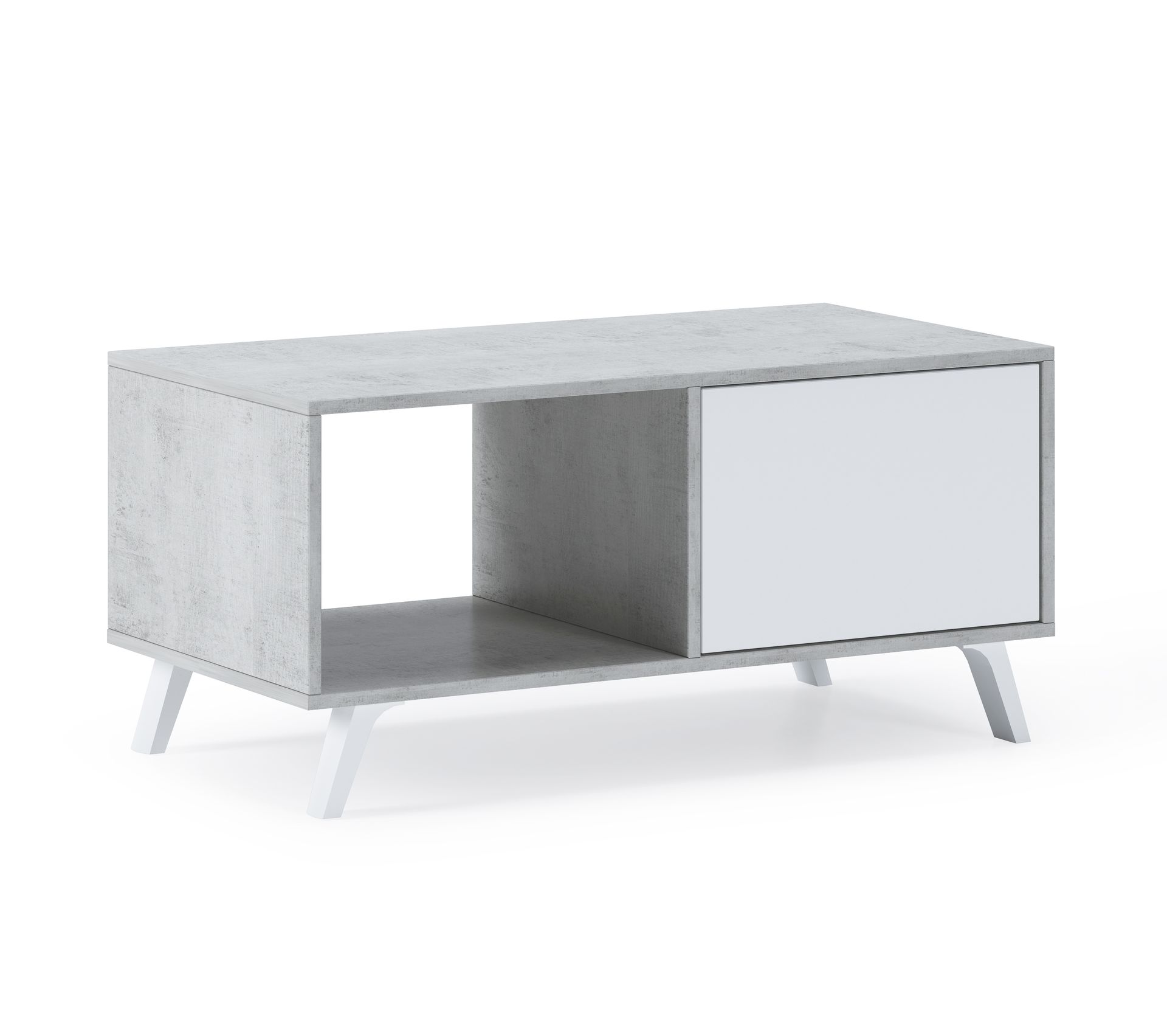 table basse avec portes modele wind structure couleur ciment portes coul blanc mat 92x50x45cm table basse but