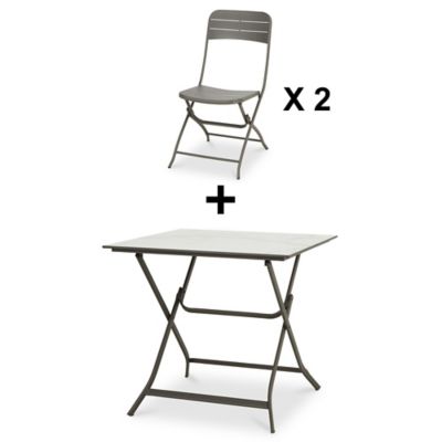 lot table de jardin metal carree blooma azolla marbre 2 chaises de jardin castorama