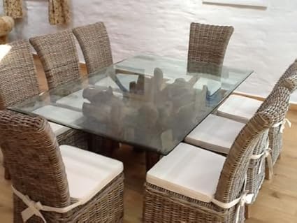sustainable furniture uk ltd rectangulaire en teck racine table de salle a manger avec plateau en verre et kubu gris osier naturel chaises latifas amazon fr cuisine maison