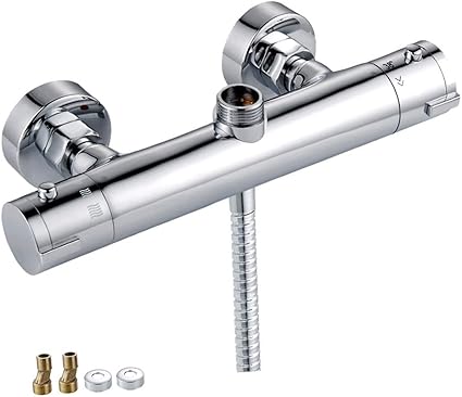 mitigeur thermostatique rond pour baignoire et douche chrome double sortie d eau chaude froide controle de la temperature constante robinet anti brulure pour salle de bain amazon fr bricolage