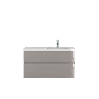 meuble sous vasque a suspendre cooke lewis voluto grege version droite 105 cm plan vasque en resine castorama