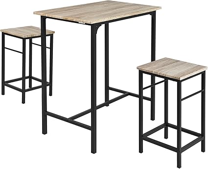 vasagle table haute avec 2 tabourets de style industriel pour cuisine salle a manger salon grege et noir lbt015b02 cdiscount maison